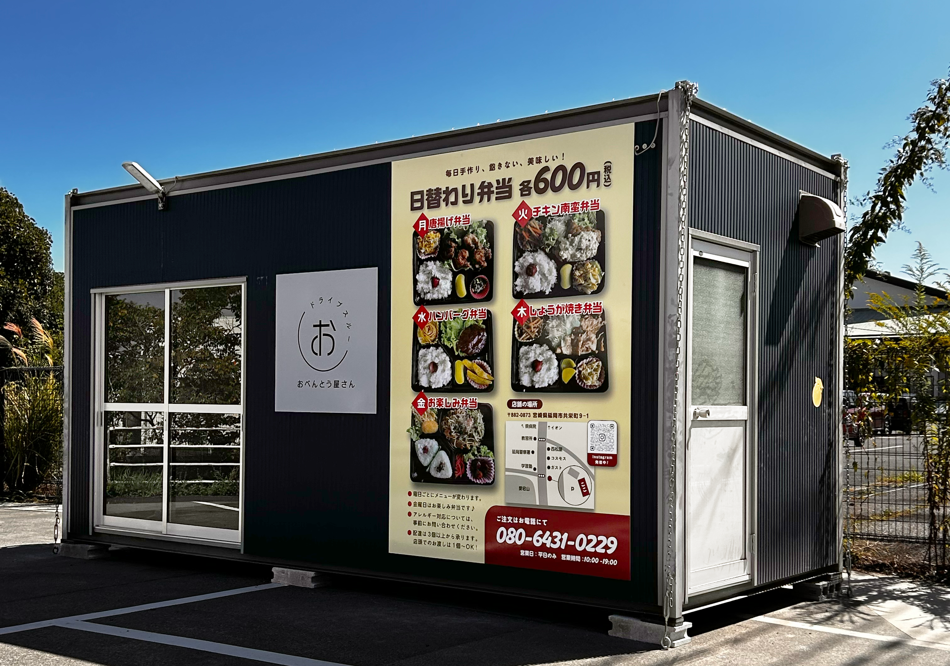 ロゴも目立たせながら、チラシやメニュー表とデザインを統一して見せることにより、認知度アップさせるように設計しています。