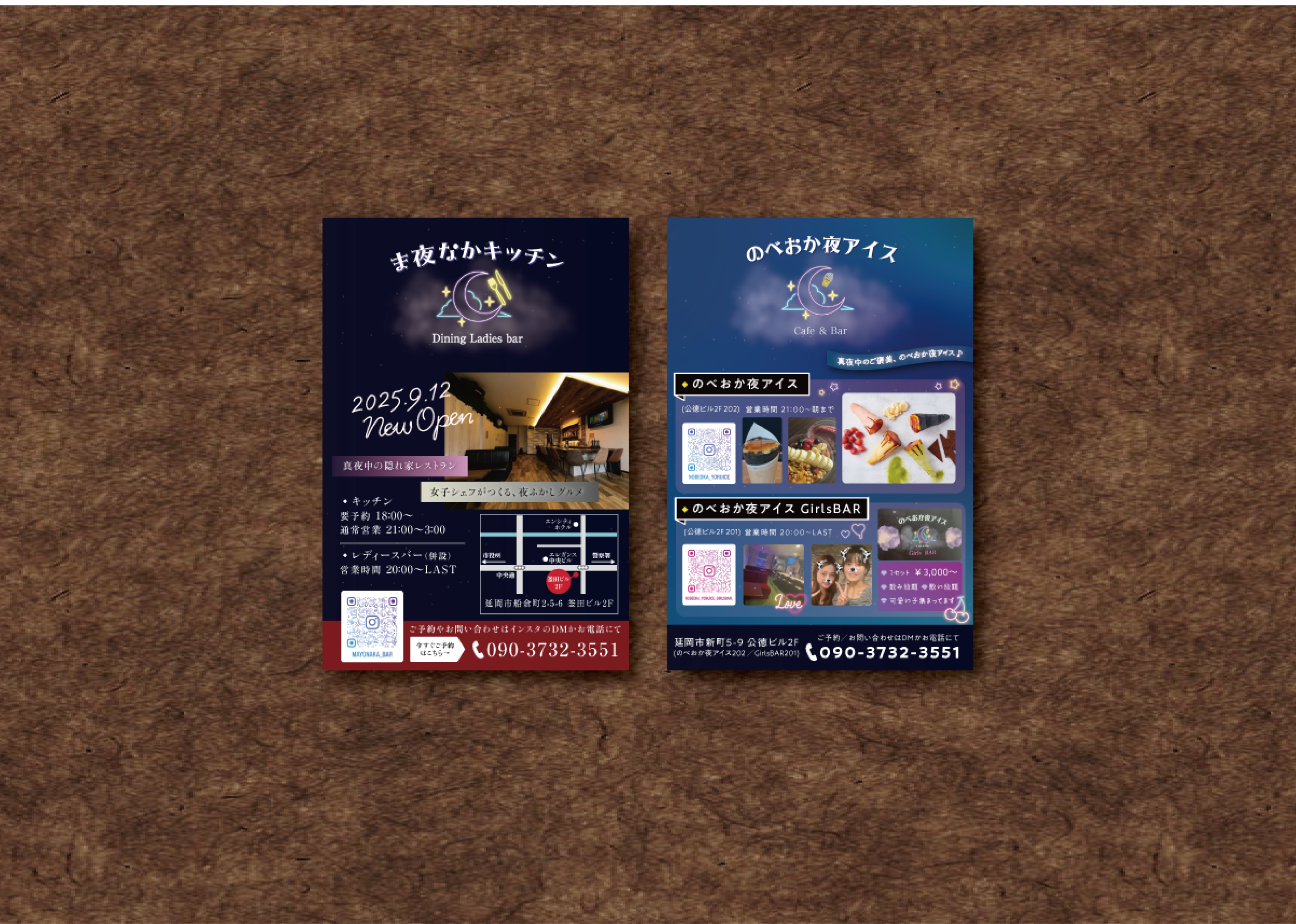 | 名刺作成 | 初回デザイン費 ¥5,500〜 表白黒100部 ¥2,200~ 表裏カラー100部¥3,850~ デザイン持ち込み可能 |